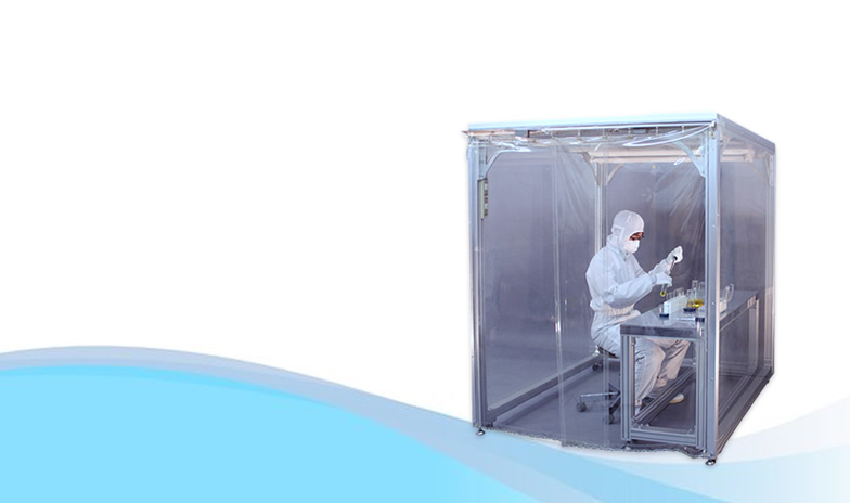 クリーンブースとは、クリーンルーム内や一般環境の一部分を間仕切り、高性能のHEPAフィルターを通してホコリや微生物などの異物を除去したクリーンな空気を送り込むことで、局所的にクリーンな環境を作り出すための設備です。