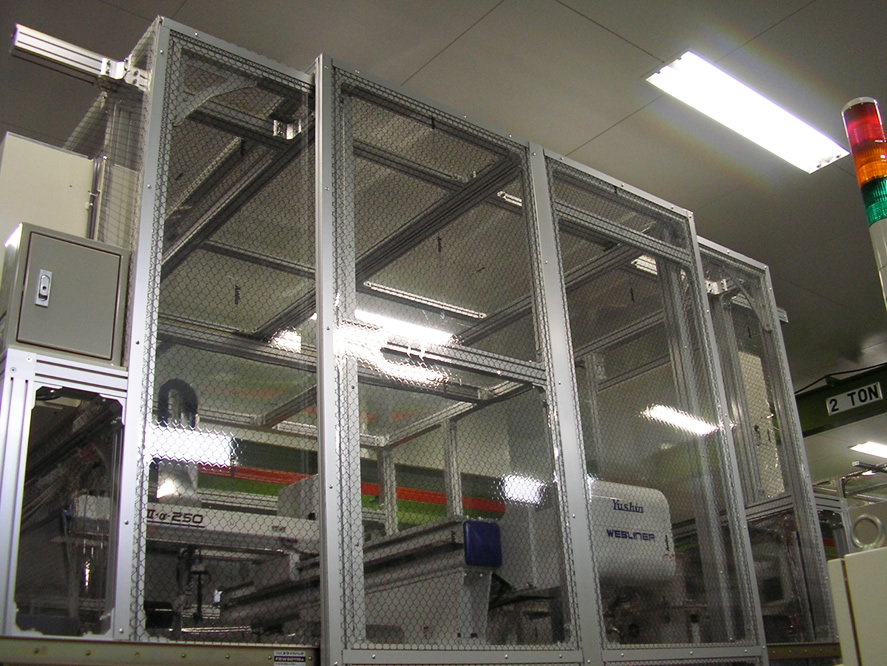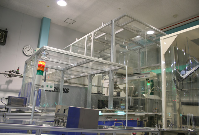 特長:成型機を囲い異物混入を防ぐブースを製作。